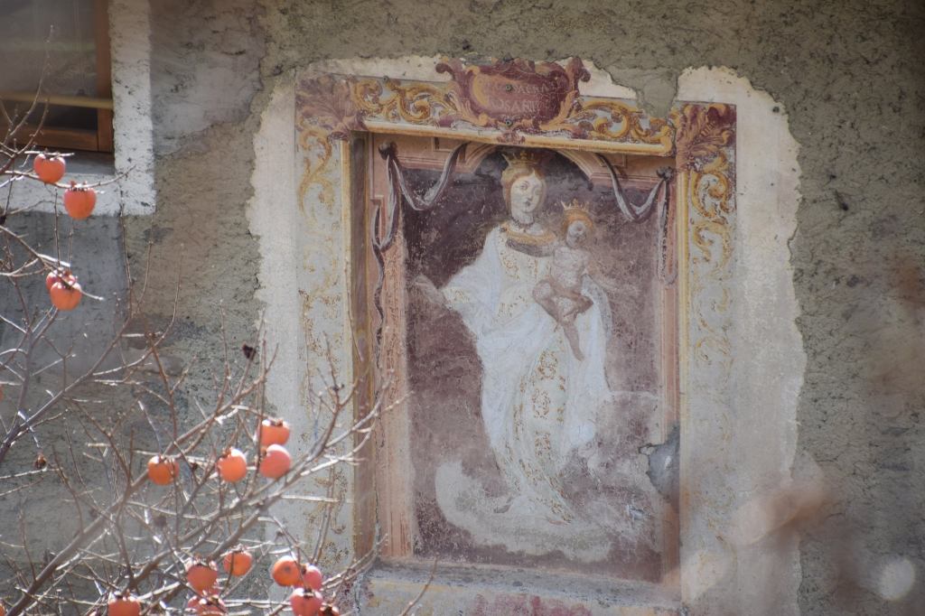 MADONNA of the day! Moncucco Basso – localita di Traona – Wall Madonna – only visible from the road to Pianezzo behind the small village. I think she is gorgeous! Photo taken December 17, 2020 at 12:00 Traona time