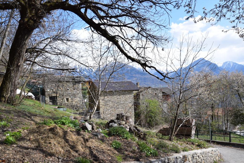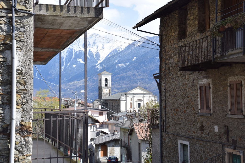 This is the via degli Alpini – the road out of Mello that goes into the summer mountain pastures and homes. This is the far west of the town and the end of via Piazzo. There is farmland all around here.