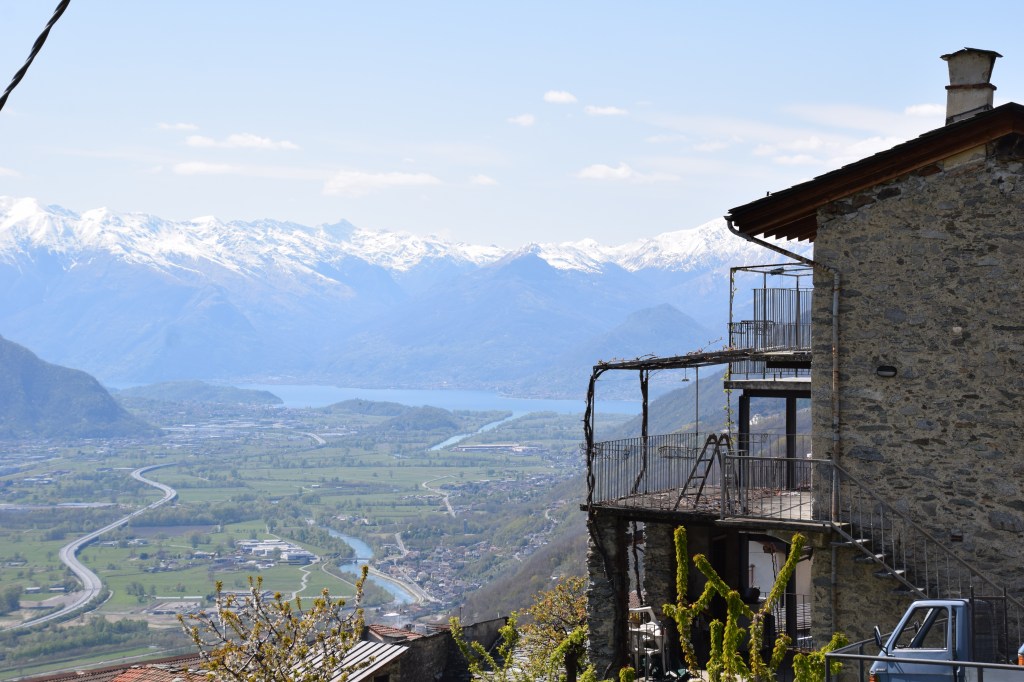 Mello is 700 meters above sea level on the Rhaetian side of the Valtellina. These two characteristics provide cool weather, lots of wind, plenty of sunshine, and stunning vistas! Mello – everywhere – has ravishing views of the Valtellina and Lake Como – lots of charm – and not much else!