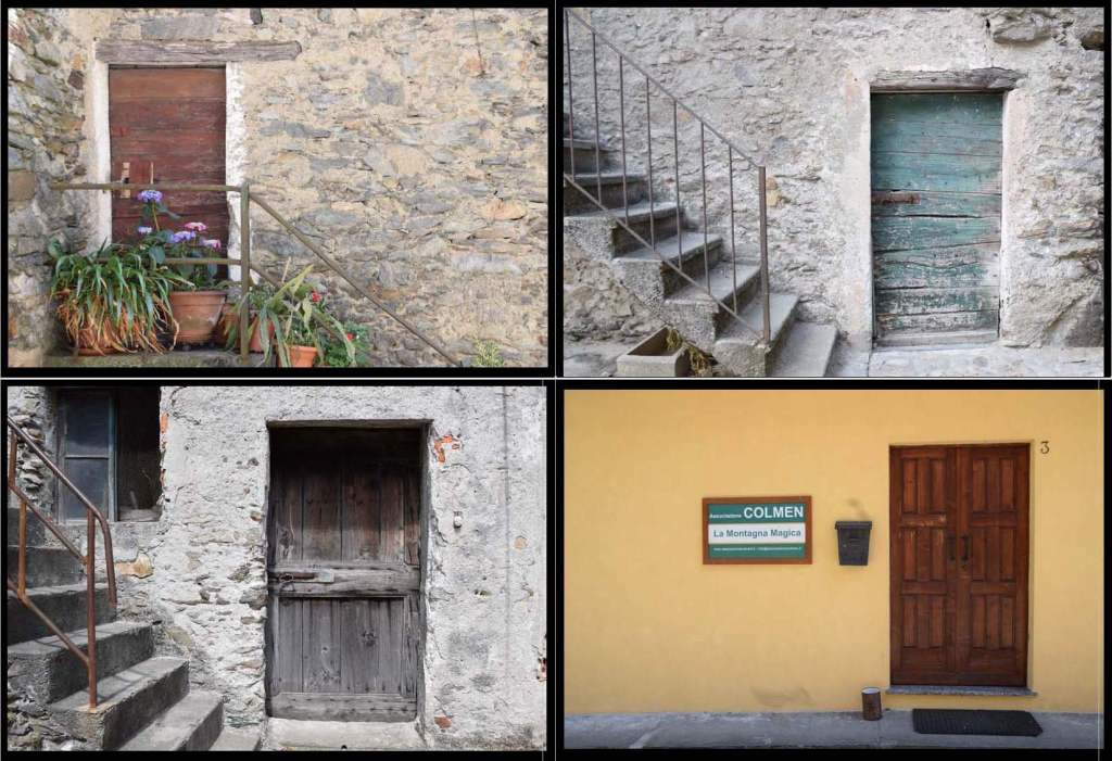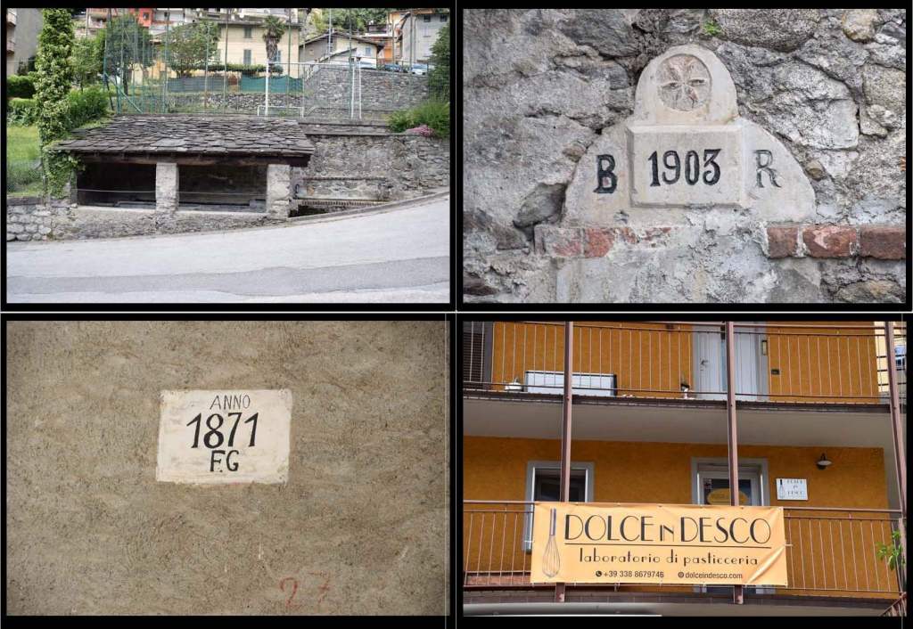The montage shows what must have been a celebrated ‘modern’ convenience – the Lavatoio Comunale of 1903! It is located on the via Valeriana – the road to town that leads from Paniga on the valley floor. This was likely the only spot suitable for the large communal laundry troughs. Also shows is a sign preserving the original age of a newly restored home. The sign advertising the only business in town was necessarily large. The laboratorio di pasticceria – DOLCE IN DESCO – was locating high above the church and peaking out from a cluster of homes that embraced the edges of the building. The pastry shop was closed – a real disappointment!