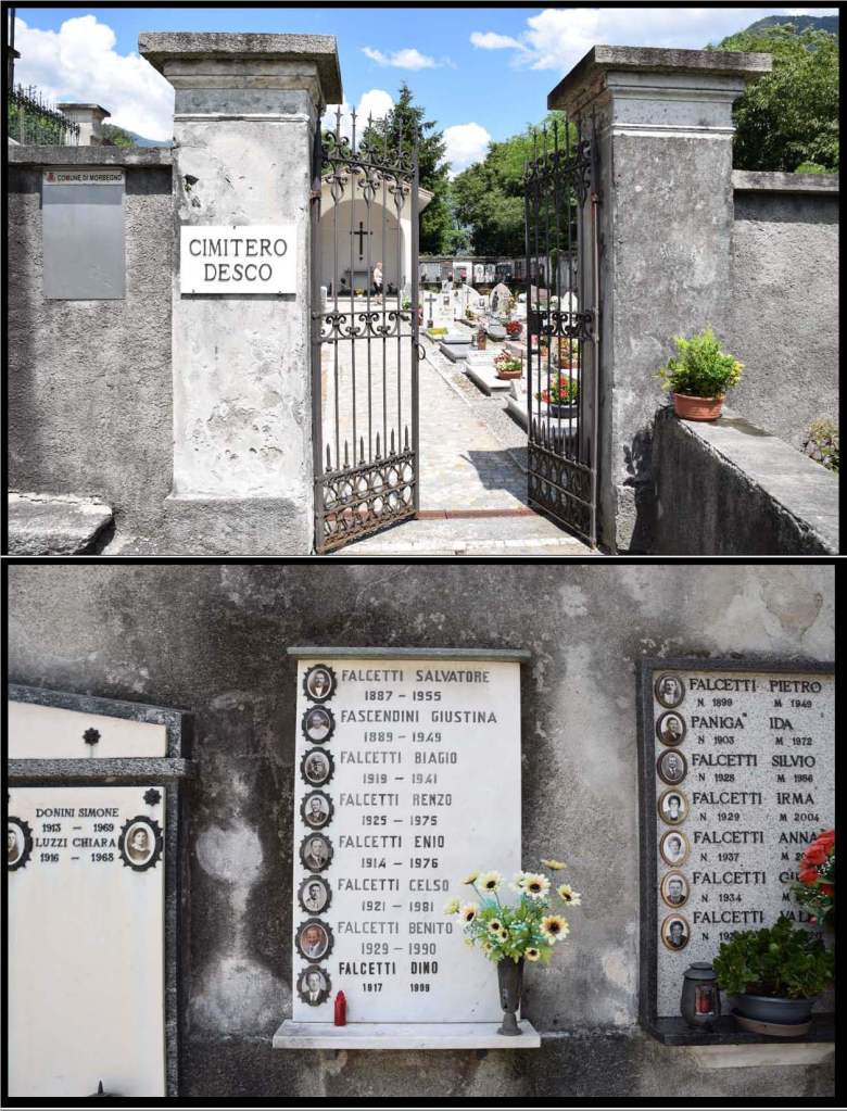 I was in Desco looking for Wall Madonna’s since my first visit a few years ago had yielded none. I found two lovely frescoes. But, I journeyed, too, because Desco, is a family town. My Aunt Rena (Margarita Pierina 1901-1979) – oldest sister to my father – in 1924 married a James Falcetti from Desco.