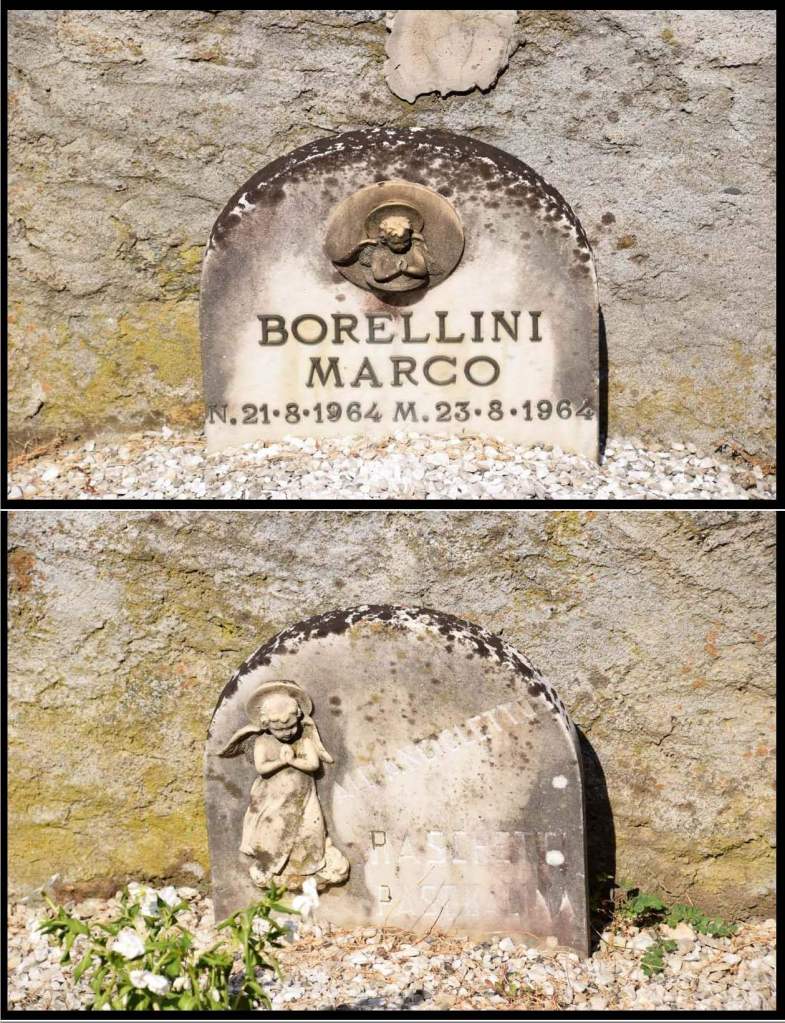 Gotardo Borellini (Alfaedo 1888-1893?) was the son of Giuseppe Borellini (Alfaedo 1840-1918) and Teresa Liberi (Al Prato 1842-1917). His siblings were Rosa Sabina Borellini (Alfaedo 1886-?) and Felice Borellini (Forcola 1874-1948). There were tombstones for Giuseppe, Teresa, and Felice but no stone or marker for Rosa Sabina or Gotardo in the Alfaedo cemetery.