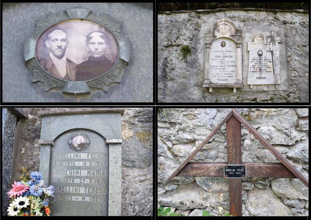 To complete my search, I checked some ancestry websites and located a Borellini relative – Elizabeth Gusmeroli – who had created a family tree that listed Giuseppe and Teresa Borellini and their children. The dates of death were blank but the dates of birth, places of birth, and names matched my information from the Alfaedo cemetery. And the Selvetta cemeteries contained the graves of many Gusmeroli families. According to this genealogy website, Felice Borellini was born in Forcola. I do not know if the designation ‘Forcola’ indicates Sirta or Selvetta. Although maps display the name ‘Forcola’ where the village of Sirta is located, there is no memorial to Felice Borellini in either Sirta cemetery.