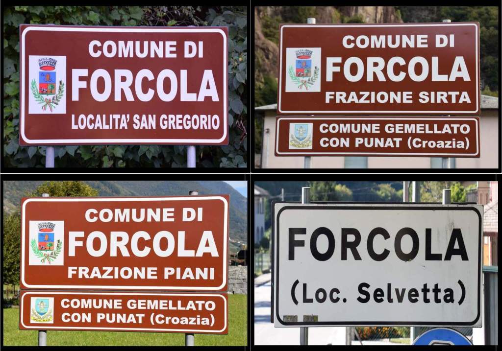 There is no village named ‘Forcola’. That there is a name without a village attached to it is a curiosity. The original territory called Forcola was formally established in the early 14th-century and was located across the Adda River. Forcola never was a village in and of itself. The only inhabited centers of the current Comune di Forcola reachable by a paved road are Piani on the Rhaetian side of the Adda River and – on the Orobic side – Sirta and the even less populated Selvetta. The rest of the comune hamlets are tiny – like the localita’ San Gregorio – and hidden in the forests of the mountains – some reachable by carriage roads and others only accessed by old mule tracks. The village that lays on the Valtellina map in the place indicated as ‘Forcola’ – on the map and in signs – is Sirta. The only carriage road to Alfaedo – where the 1893 fresco is found – begins in Selvetta. The original roads – the mulatierre – lead to Alfaedo from both Sirta (to the west) and Selvetta (to the east).