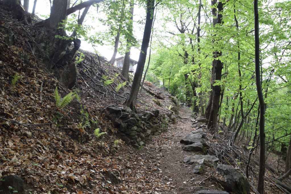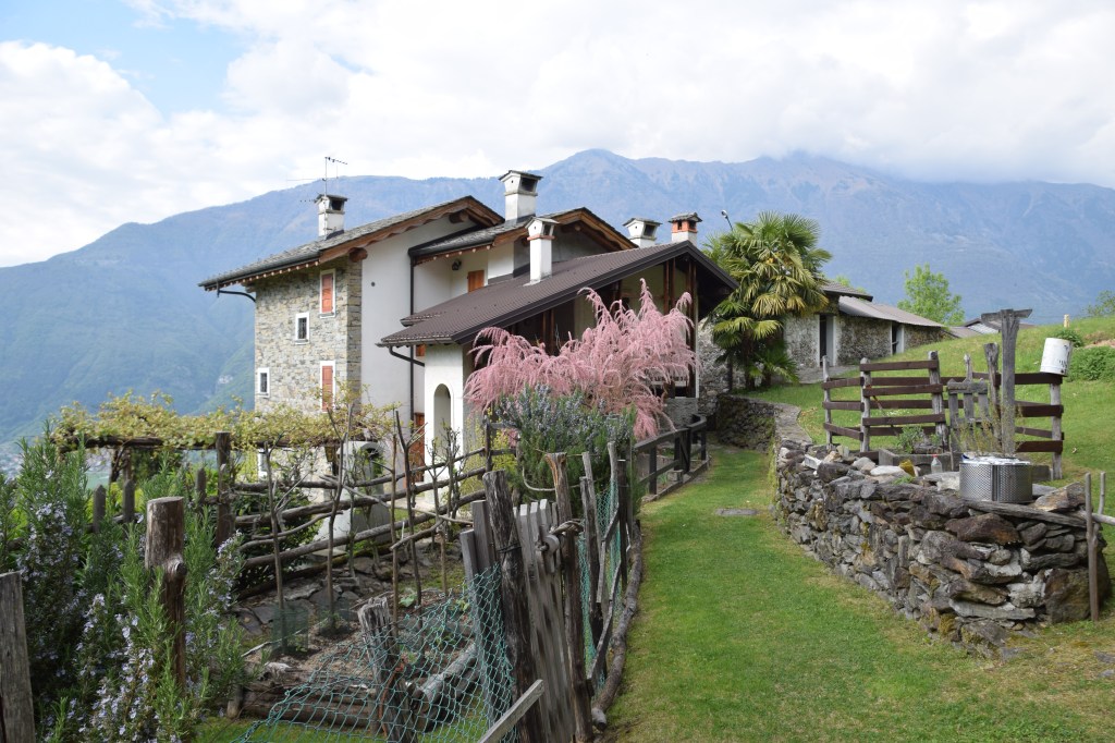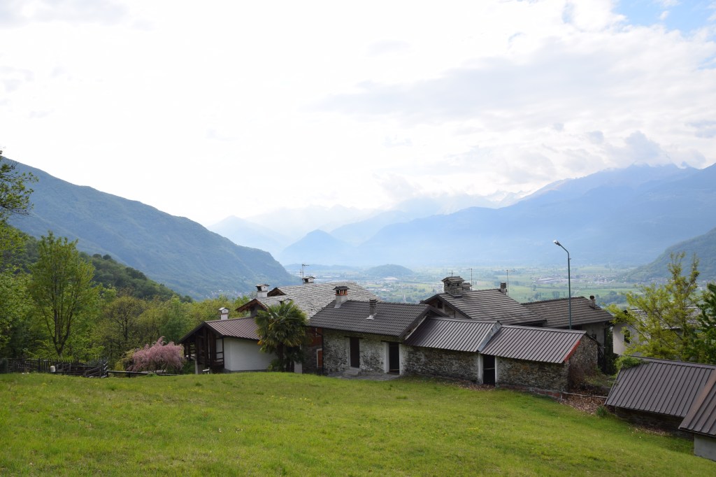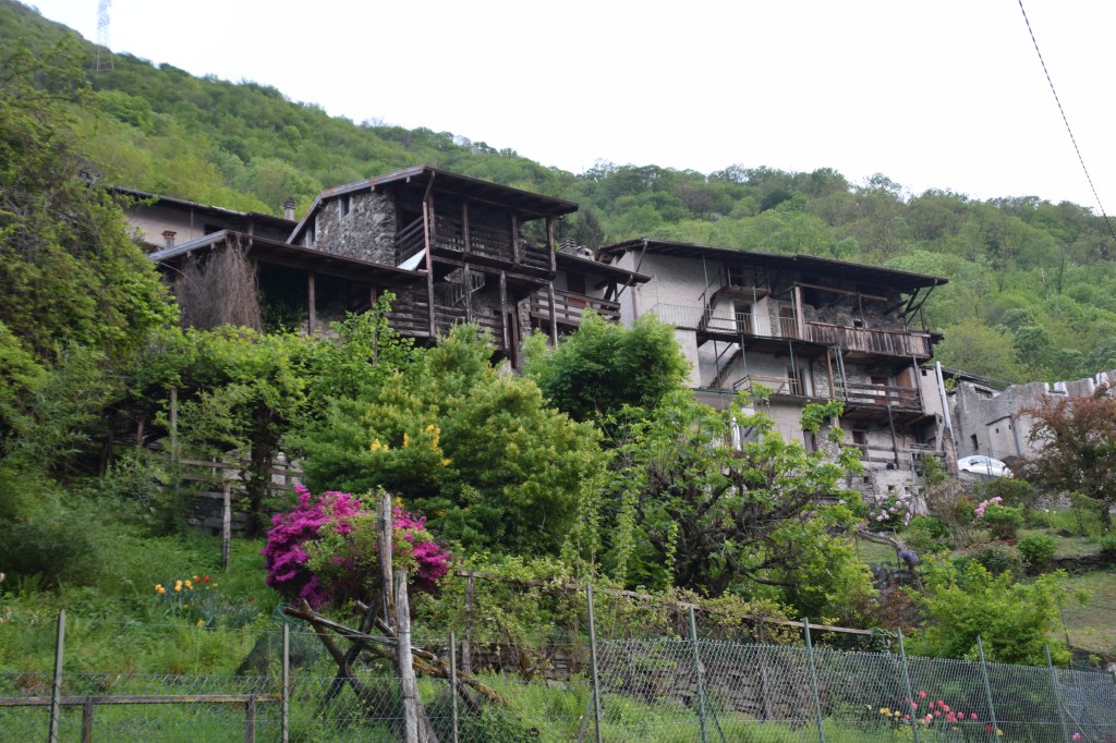 This is Piazz or Piazzo as one finds on a map. The huts of this localita’ of Andalo Valtellino are clustered together around a small central piazza. Being the only relatively ‘flat’ expanse here perhaps motivated the name. This small borgo lies at 466 meters and most of the homes have been restored. There are meadows surrounding the houses and – although steep – the terrain and dirt paths in the surrounding forest allow for relatively easy walking.