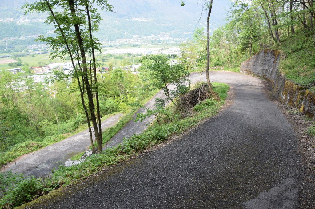 Here are some views of the mulatierre that begin in Andalo and criss-cross the mountain face all leading to localita’s from 500 meters to over 1000 meters above the valley. These stone-paved roads tend to be very steep making the walk up them heart-pounding and the walk down slippery and difficult.