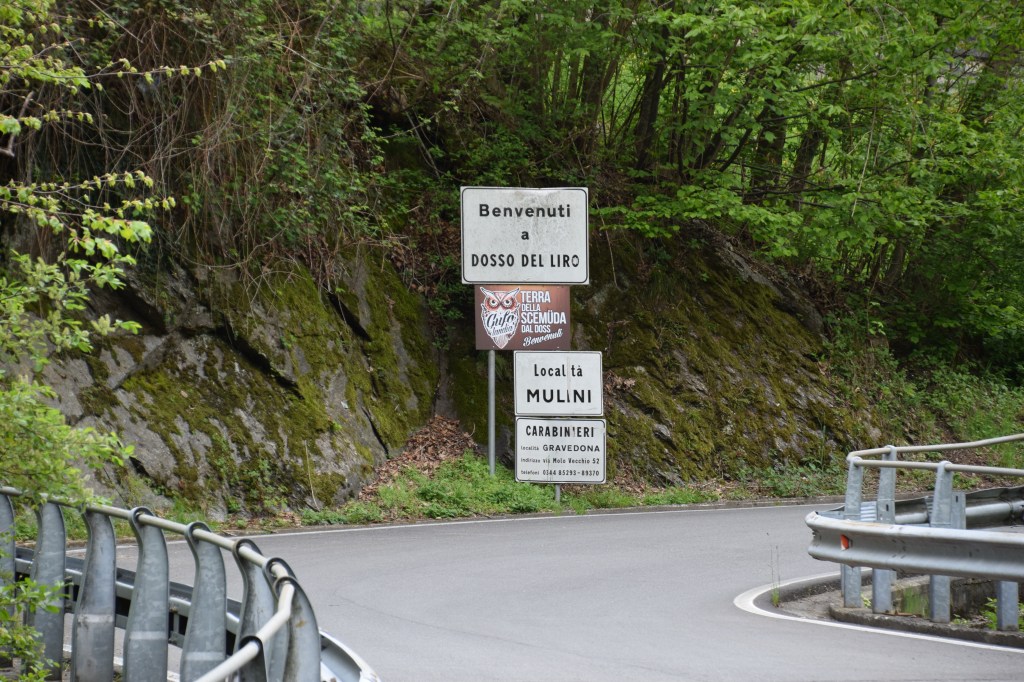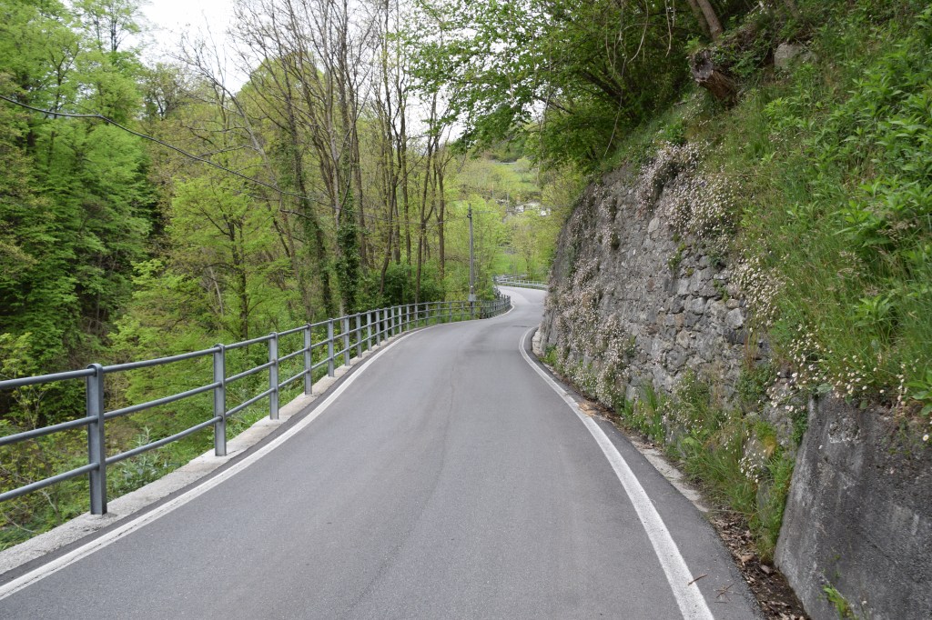 One reaches the villages above the lake by provincial roads. Some of these roads are narrow – a scant one car wide – and some – like this one – can host two cars going in opposite directions. This is Strada Provinciale 4 – SP4 – the road from Gravedona on Lake Como that leads to Mulini and whose two branches end at Dosso del Liro to the west and Livo to the east.