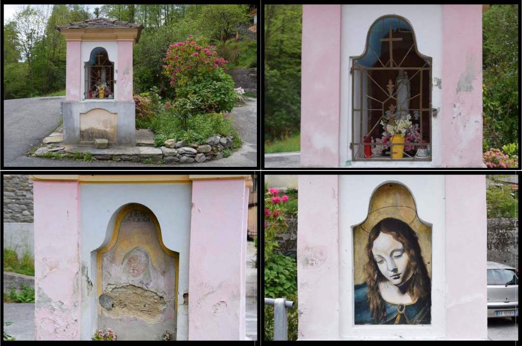 The tiny village has only one short road, mostly renovated homes, and a few public parking spaces. The lone Madonna shrine was restored, the original frescoes being lost to time and the weather.