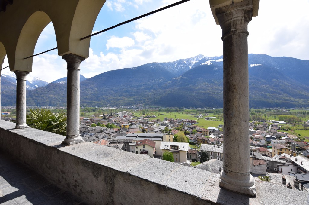 The Chiesa di Sant’Alessandro – the parish church – dates to the 13th-century when Traona was a power in the Valtellina with its own Podesta’ and a customs office which – when operating – sat next to the gates to the city. The town lies on the via Valeriana which was the main road through the Valtellina on the Rhaetian side of the valley. With Morbegno to the east, the two towns controlled trade along the river Adda.