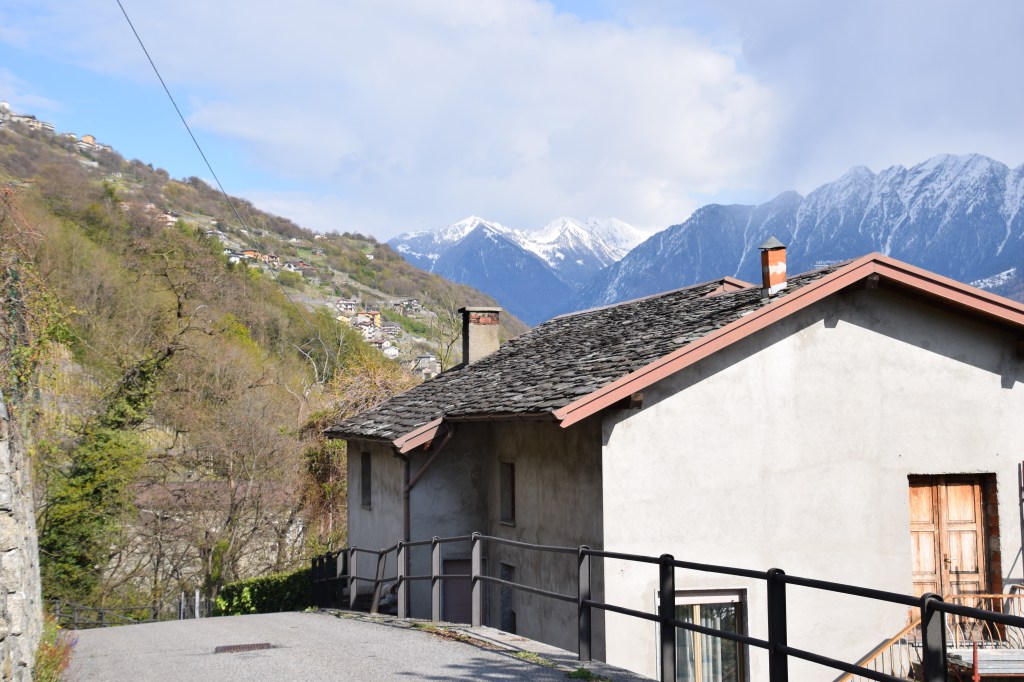 Walking on the via Pianezzo and looking back toward Traona while walking offers a fabulous early Spring view. The road winds back and forth up the mountainside and offers a lovely walk.
