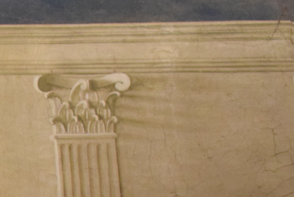 Lapis Lazuli is the cause of the bright, original color of Mary’s mantle. This precious stone, obtained from Afghanistan and ground to a powder to be mixed for a paint, was expensive and used only when a donor had the means to afford its use.